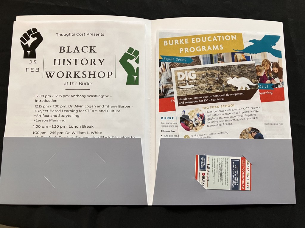 Thoughts Cost LLC CEO Anthony Washington organized the event. Anthony Washington presented strategies for incorporating Social Emotional Learning (SEL) into Black history education, emphasizing the importance of creating safe and inclusive learning environments that promote respect, empathy, and cultural competence. It featured distinguished guest speakers, including Dr. Alvin Logan and Tiffany Barber from the Burke Museum of Natural History and Culture. Dr. Logan and Barber led a hands-on object-based learning workshop, allowing attendees to engage with museum artifacts and explore the intersection of STEAM and culture.