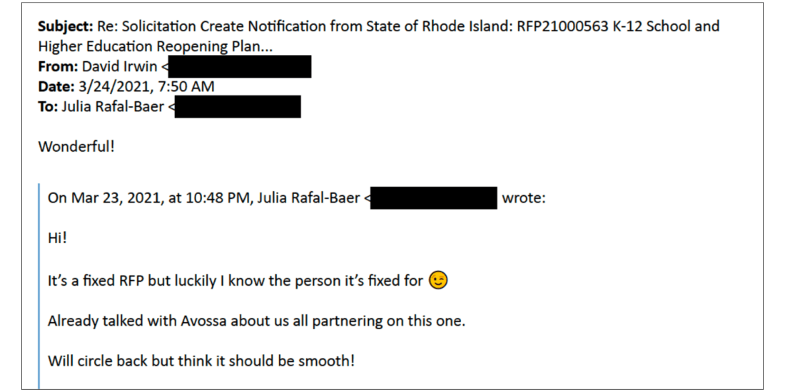 An email exchange revealing concerns about a potentially manipulated Request for Proposal (RFP) process in Rhode Island's education sector. Gatekeeping, "Statewide" Work, and Black Kids in Washington Somebody in Rhode Island hit send on an email that most people in education politics only say out loud behind closed doors. "It's a fixed RFP, but luckily … Continue reading Fixed For Who